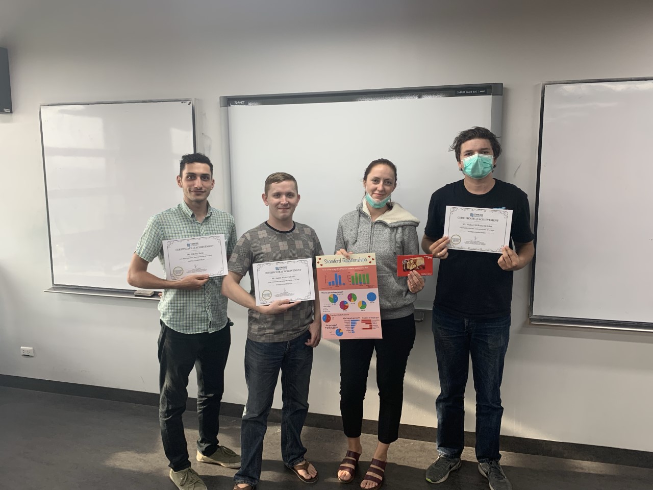 All sections from the Rama 9 and Hua Hin campuses participated in the competition between January 20th 2020 and February 7th 2020. Learners were placed in groups of three to four and were required to use statistical methods to collect, organize, analyze, and report results using a poster presentation. Three of our lecturers who acted as judges evaluated all posters. The winning teams were awarded gift cards used for shopping in different Central shopping malls and certificates signed by the dean of Business and Technology.