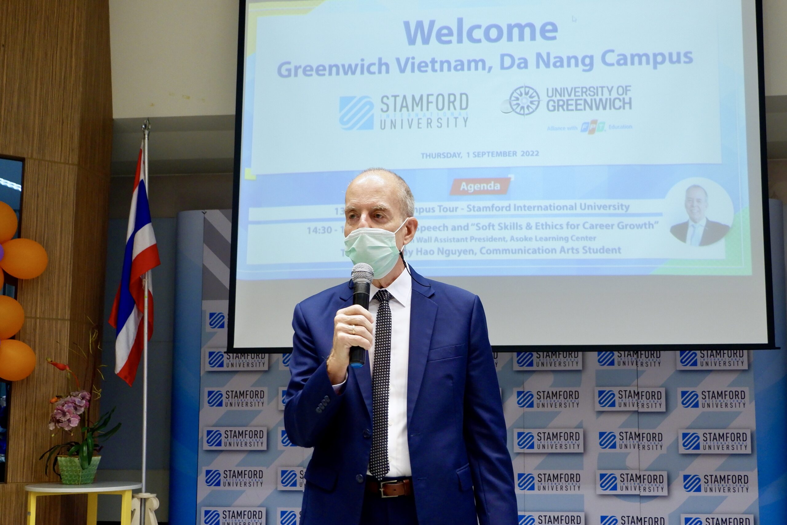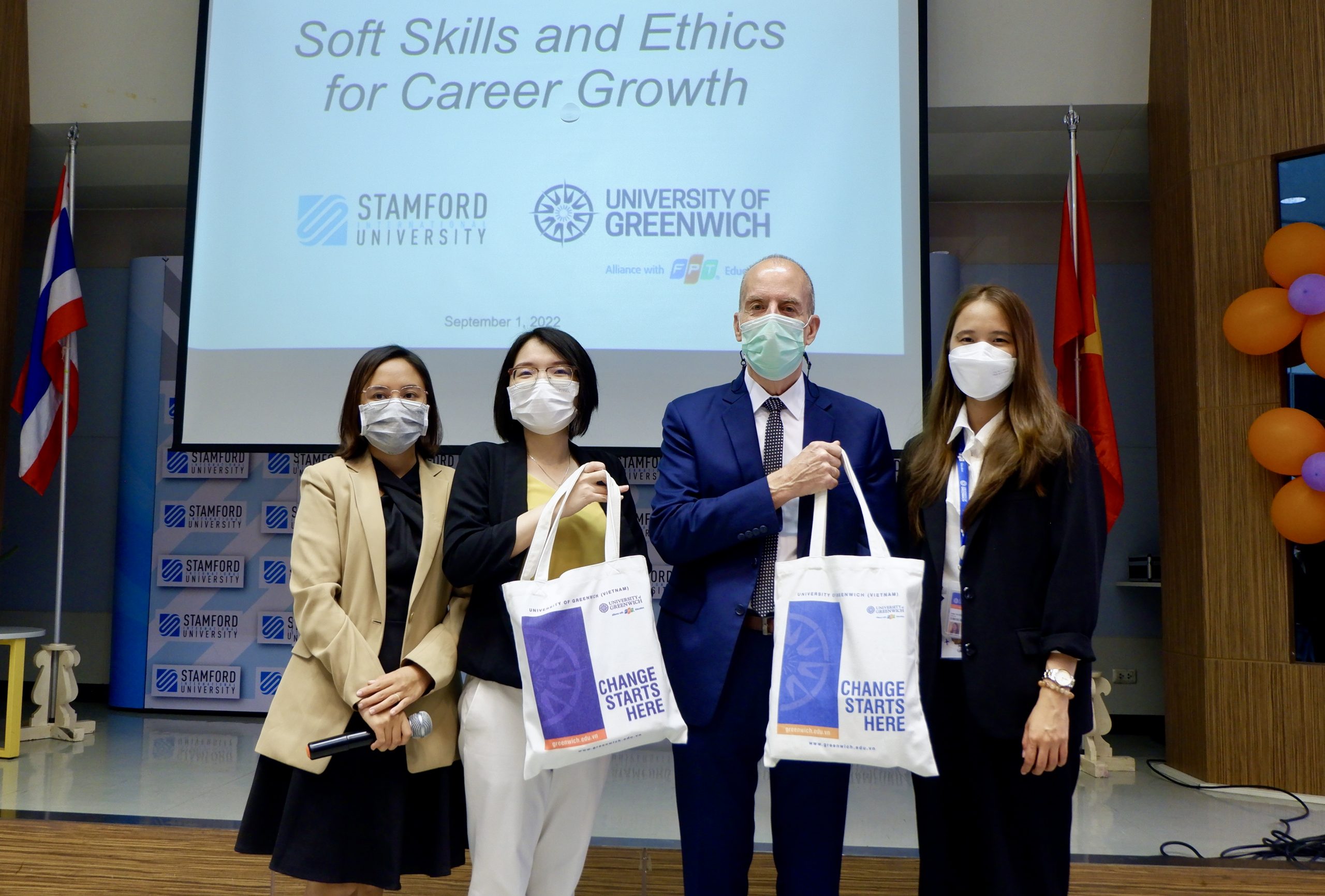 After the campus tour, students were warmly welcomed by Dr. Apitep Saekow (Acting President) and Dr. William Wall (Assistant President, Asoke Learning Center). The key session of the event was a Workshop delivered by Dr. William. The workshop topic was “Soft Skills & Ethics for Career Growth.” Stamford hopes that the workshop provided Greenwich Vietnam students valuable knowledge about how to improve their communication skills and about how important ethics are in business.