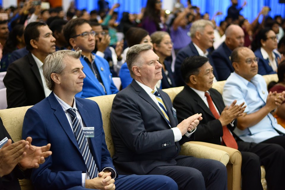 วันที่ 7 กันยายน 2562 มหาวิทยาลัยนานาชาติแสตมฟอร์ด วิทยาเขตหัวหินชะอำ จังหวัดเพชรบุรี นายอลงกรณ์ พลบุตร ที่ปรึกษารัฐมนตรีว่าการกระทรวงเกษตรและสหกรณ์ เป็นประธานในพิธีเปิดการแข่งขันนวัตกรรมไอทีระดับนานาชาติ Youth Endeavors for Social Innovation Using Sustainable Technology หรือ IEEE YESIST12 ซึ่งปีนี้ ประเทศไทย และประเทศอินเดีย ร่วมกันเป็นเจ้าภาพ โดยพิธีเปิดในครั้งนี้มีขบวนเชิญธงนานาชาติของผู้เข้าแข่งขัน จำนวน 19 ประเทศ คือ ประเทศไทย อินเดีย ญี่ปุ่น ฟิลิปปินส์ อัฟกานิสถาน บังกลาเทศ ศรีลังกา ลาว ปากีสถาน อียิปต์ เคนยา เกาหลีไต้ กัมพูชา ไนจีเรีย ยูกันดา มาเลเชีย อินโดนีเซีย ไต้หวัน และพม่า เข้าสู่หอประชุม โดยมีนายกอบชัย บุณรณะ ผู้ว่าราชการจังหวัดเพชรบุรี พร้อมด้วยหอการค้าเพชรบุรี,หอการค้าประจวบคีรีขันธ์,สมาคมธุรกิจการท่องเที่ยวหัวหิน/ชะอำ ฯลฯ เข้าร่วมพิธีเปิด