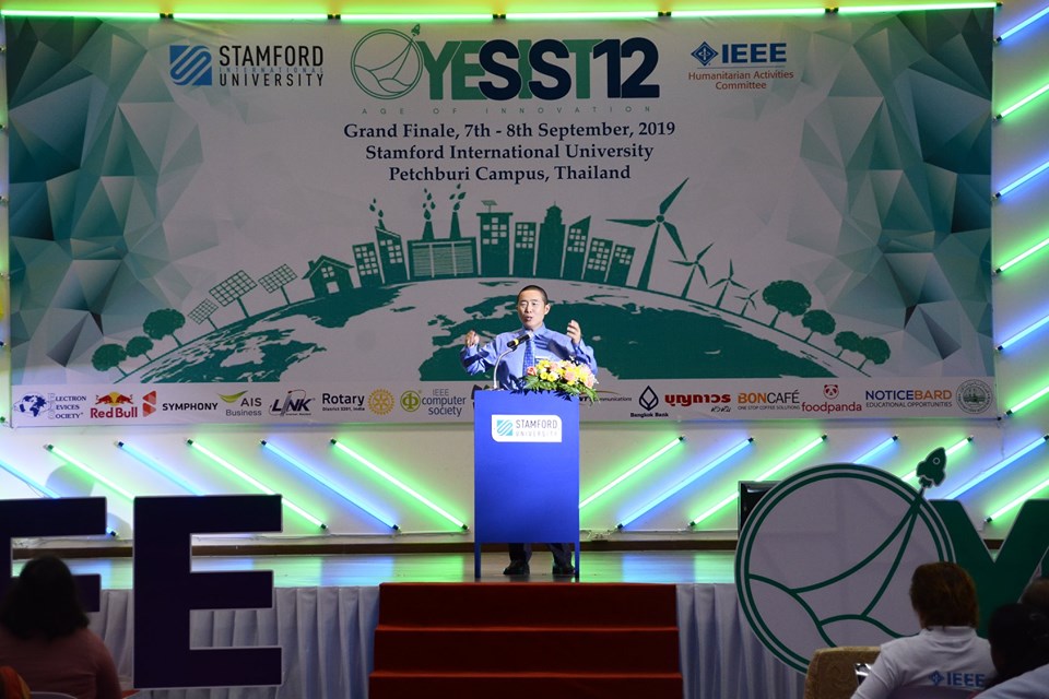ดร.แอนดรูว์ สกาวน์ อธิการบดี มหาวิทยาลัยนานาชาติแสตมฟอร์ด กล่าวว่า การแช่งขันนวัตกรรมไอทีระดับนานาชาติ IEEE YESIST12 เป็นเวทีแสดงความสามารถ นวัตกรรมเทคโนโลยีระดับนานาชาติของเยาวชนและคนรุ่นใหม่ที่ศักยภาพด้านการพัฒนานวัตกรรม เริ่มจัดขึ้นครั้งแรกที่มลรัฐแคลิฟอร์เนีย ประเทศสหรัฐอมริกา ซึ่งจัดขึ้นในประเทศต่างๆ เป็นประจำทุกปี โดยปีนี้มหาวิทยาลัยนานาชาติแสตมฟอร์ด วิทยาเขตหัวหิน-ชะอำ ได้รับเกียรติร่วมจัดงานและสนับสนุนสถานที่ในการจัดการ และมีผู้เข้าร่วมการแข่งขันที่การคัดเลือกเข้าสู่รอบสุดท้ายกว่า 500 คน อายะ 10-25 ปี โดยในปีนี้กำหนดหัวข้อ “การเตรียมตัวเพื่ออนาคต:เทคโนโลยีที่เปลี่ยนแปลงอย่างยั่งยืน”มีเป้าหมายเพื่อพัฒนาเทคโนโลยีนวัตกรรมที่ยั่งยืนในการแก้ไขปัญหาในสังคมใกล้ตัว ทั้งด้านมนุษยธรรม ด้านสังคมสิ่งแวดล้อม อาทิ ความยากจน ความอดอยาก การคาดการณ์ภัยพิบัติ โรคภัย ความปลอดภัยของผู้หญิงและเด็ก การจัดการทรัพยากรของชาติ เป็นไปตามเป้าหมายการพัฒนาที่ยั่งยืนขงสหประชาชาติ