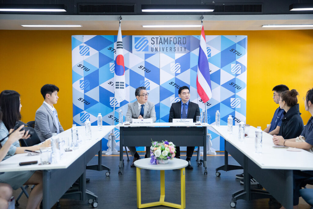 On Thursday, September 5, 2024, Stamford International University’s Rama 9 Campus in Bangkok hosted its fourth “Meet the Ambassador” event, with H.E. Mr. Park Yongmin, Ambassador Extraordinary and Plenipotentiary of the Republic of Korea to Thailand, as the distinguished guest speaker. This event is part of Stamford’s ongoing initiative to expose lecturers, staff, students, and alumni to the rich cultures, languages, and societies of Thailand and other countries.