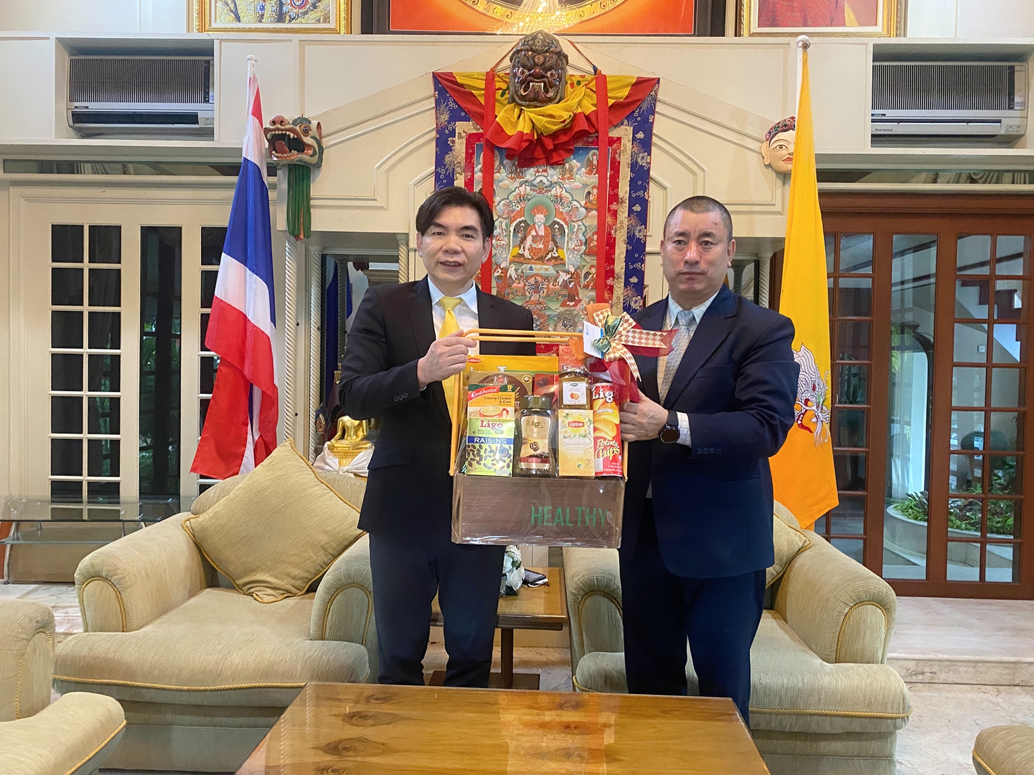 On Friday, February 3, 2023, Dr. Apitep Saekow (Acting President) including lecturers and staff met and expressed the New Year greetings to H.E. Mr. Kinzang Dorji (Ambassador Extraordinary and Plenipotentiary of the Royal Bhutanese Embassy) at the Embassy, Bangkok and also have discussed on any potential collaboration in the future. Thank you very much for the warm welcome.