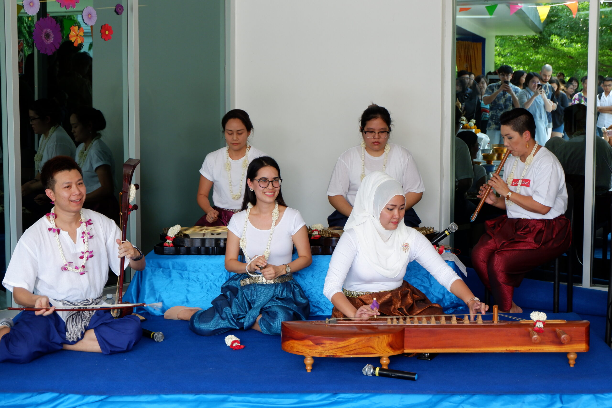 Today we celebrated these differing aspects of Songkran, organized by students and staff members. First we participated in a water blessing ceremony where students paid respect to the lecturers, deans and our CEO by pouring the water over their hands while they wished us a happy prosperous year, followed by a display of traditional Thai dancing by students, instrumental music by Stamford staff members and songs from our student band. For many international students and exchange students at Stamford, this is their first Songkran in Thailand, so they learned about this annual amazing cultural festival.