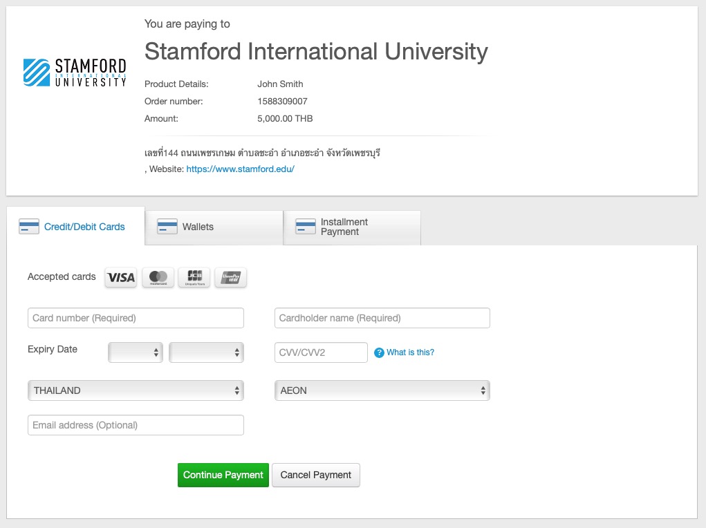 A unique payment link will be generated for each student. New students may contact Admission Office to get payment link, and existing student may contact cashier (cashier_rm9@backup-stamford.todsorb.dev) to get payment link.
